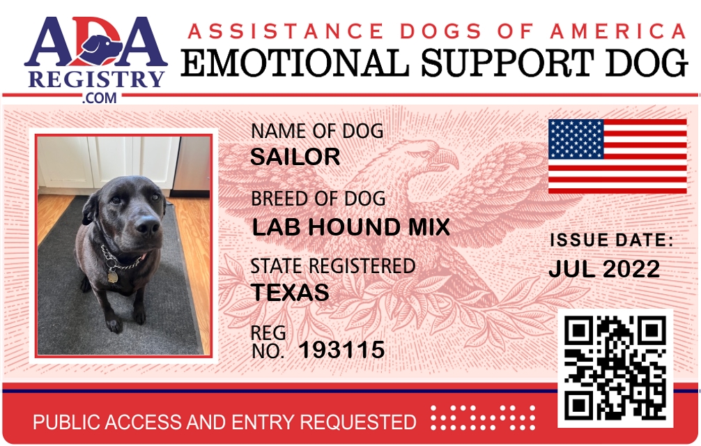 Emotional Support Dog Registration for Sailor