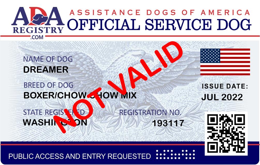 Service Dog Registration for Dreamer
