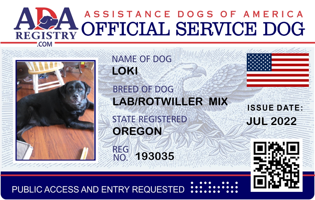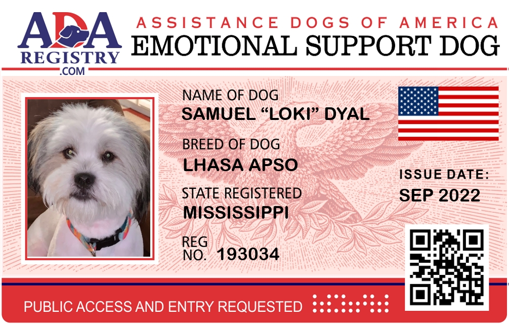 Emotional Support Dog Registration for Samuel “Loki” Dyal