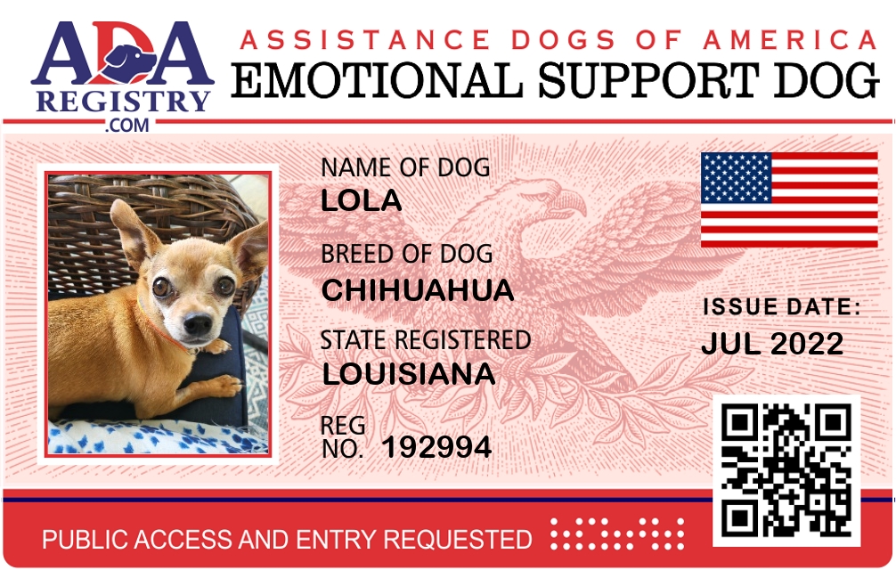 Emotional Support Dog Registration for Lola