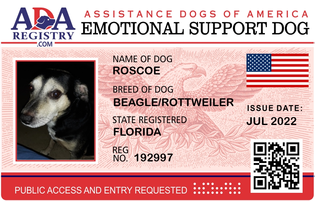Emotional Support Dog Registration for Roscoe