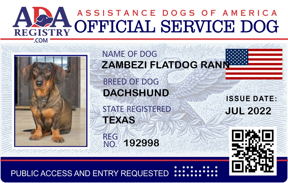 Service Dog Registration for Zambezi Flatdog Rann