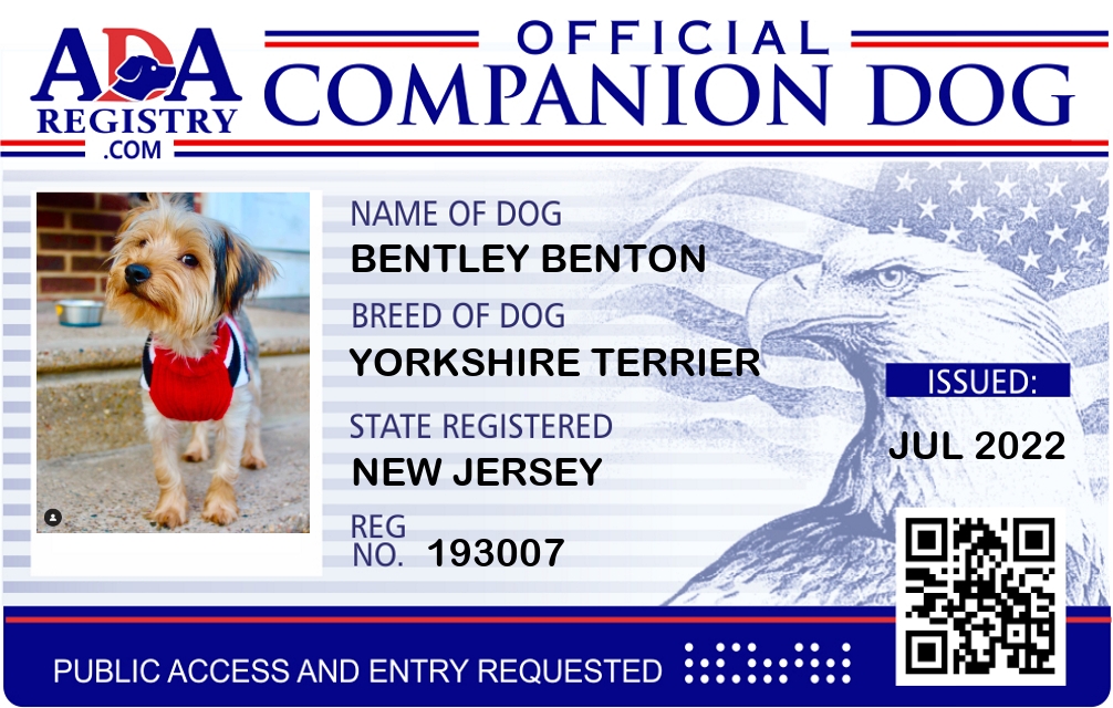 Companion Dog Registration for Bentley Benton