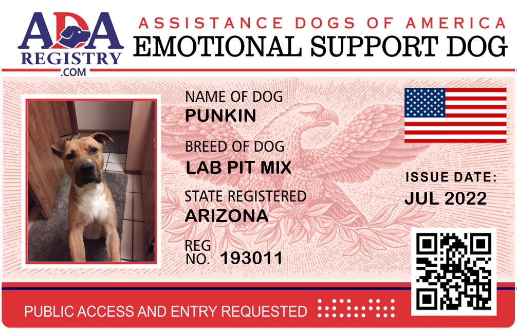 Emotional Support Dog Registration for punkin