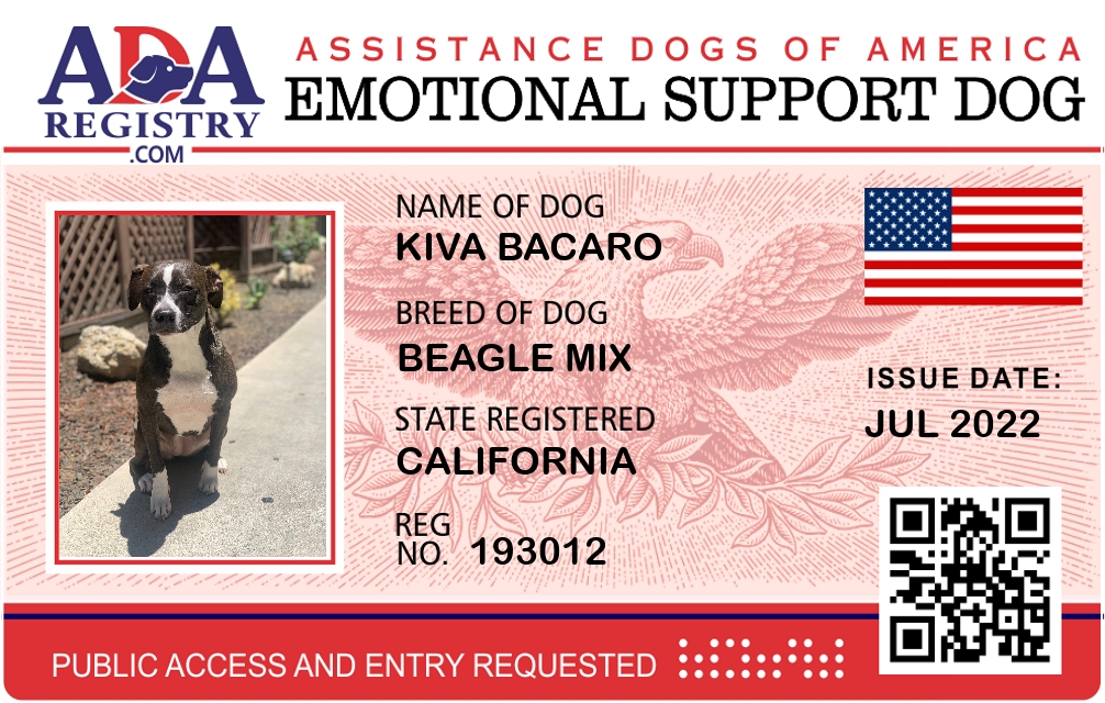 Emotional Support Dog Registration for Kiva Bacaro