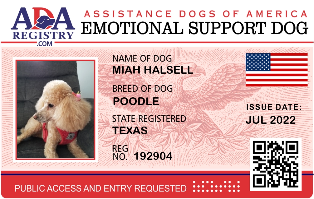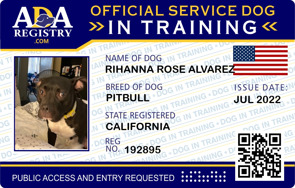 Service Dog In Training Registration for Rihanna Rose Alvarez