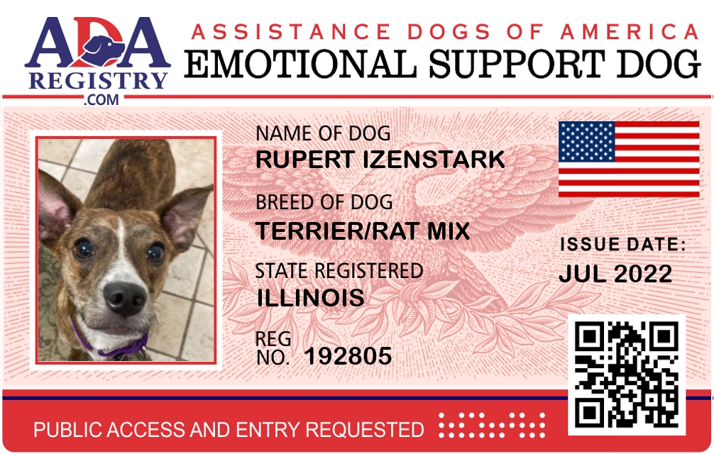 Emotional Support Dog Registration for Rupert Izenstark