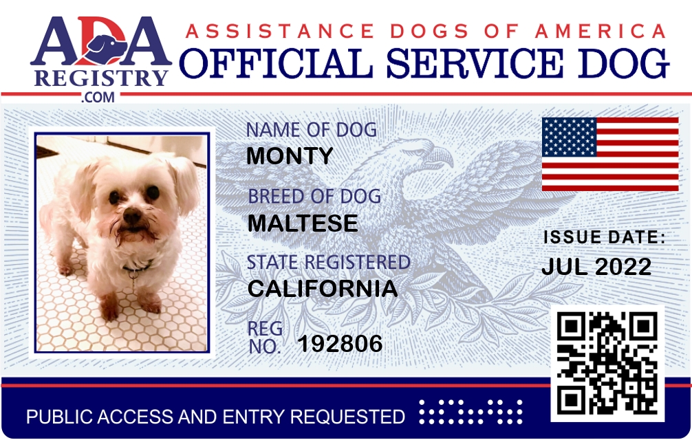 Service Dog Registration for Monty