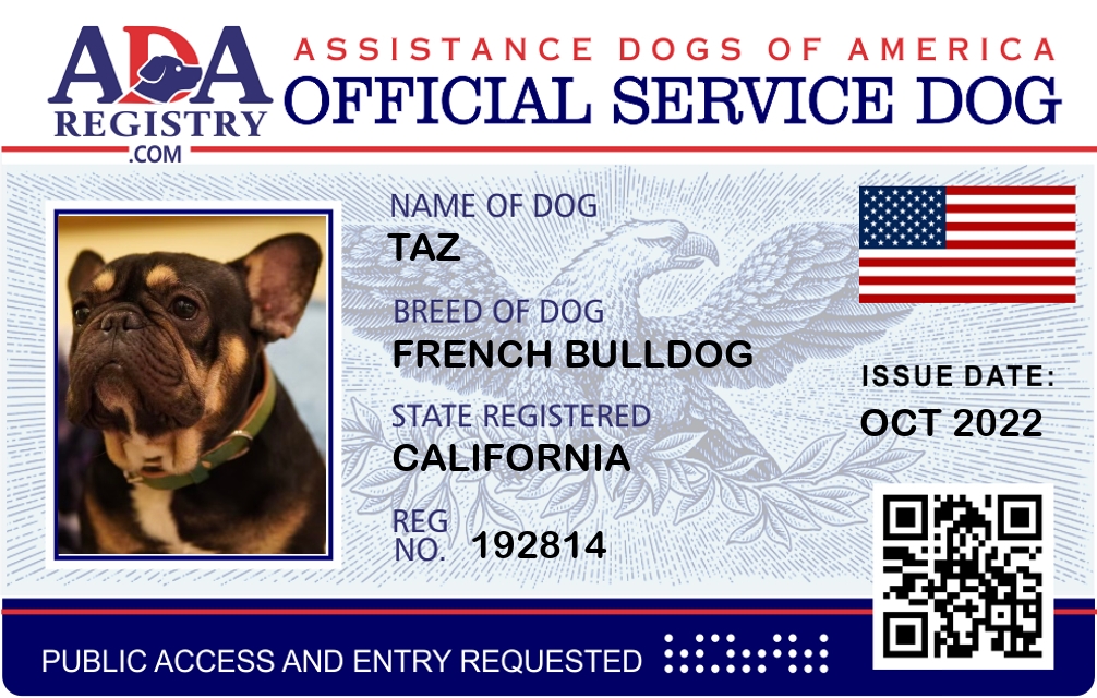Service Dog Registration for TAZ