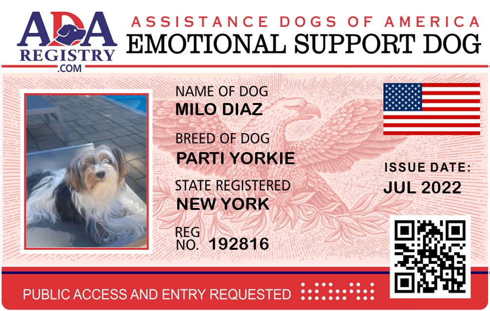 Emotional Support Dog Registration for Milo Diaz
