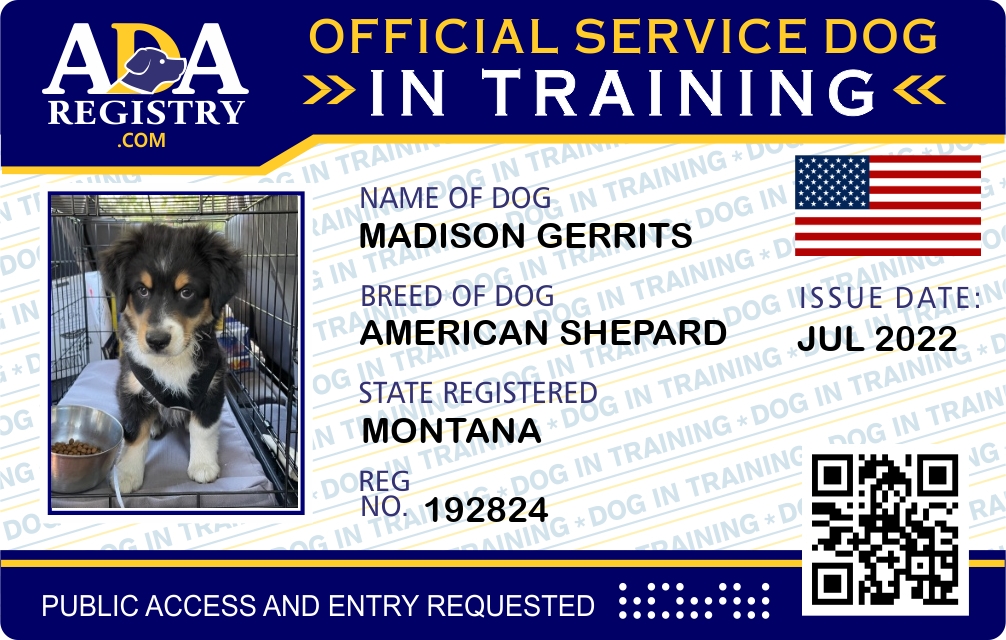 Service Dog In Training Registration for Madison Gerrits