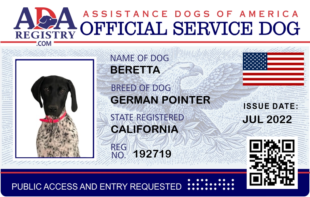 Service Dog Registration for Beretta