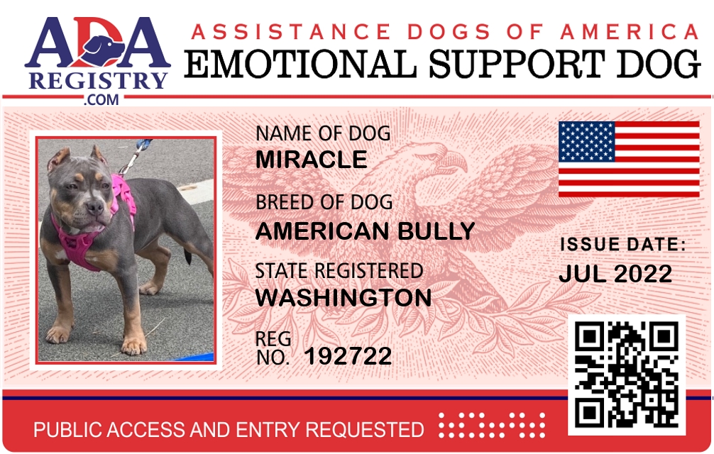 Emotional Support Dog Registration for Miracle