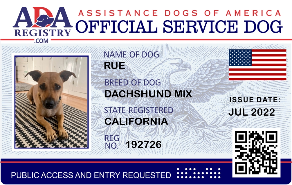 Service Dog Registration for Rue