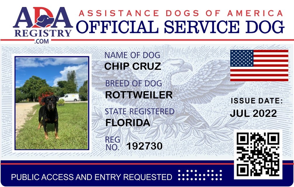 Service Dog Registration for Chip Cruz