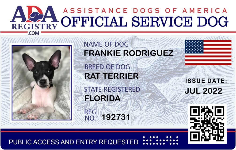 Service Dog Registration for Frankie Rodriguez
