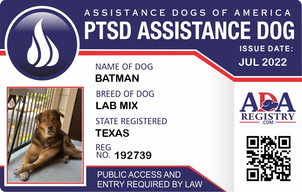 PTSD Assistance Dog Registration for Batman