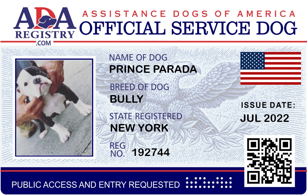 Service Dog Registration for Prince Parada