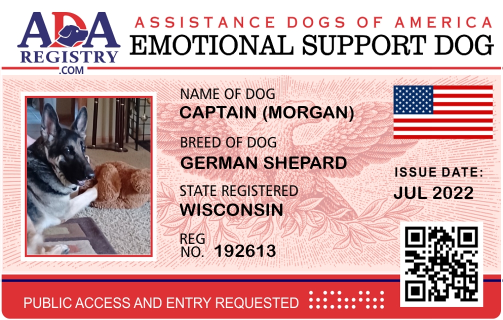 Emotional Support Dog Registration for Captain (Morgan)