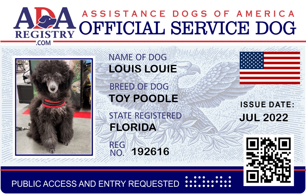 Service Dog Registration for Louis Louie