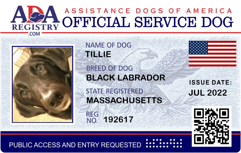 Service Dog Registration for Tillie