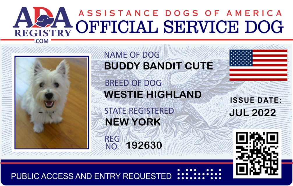 Service Dog Registration for Buddy Bandit Cute