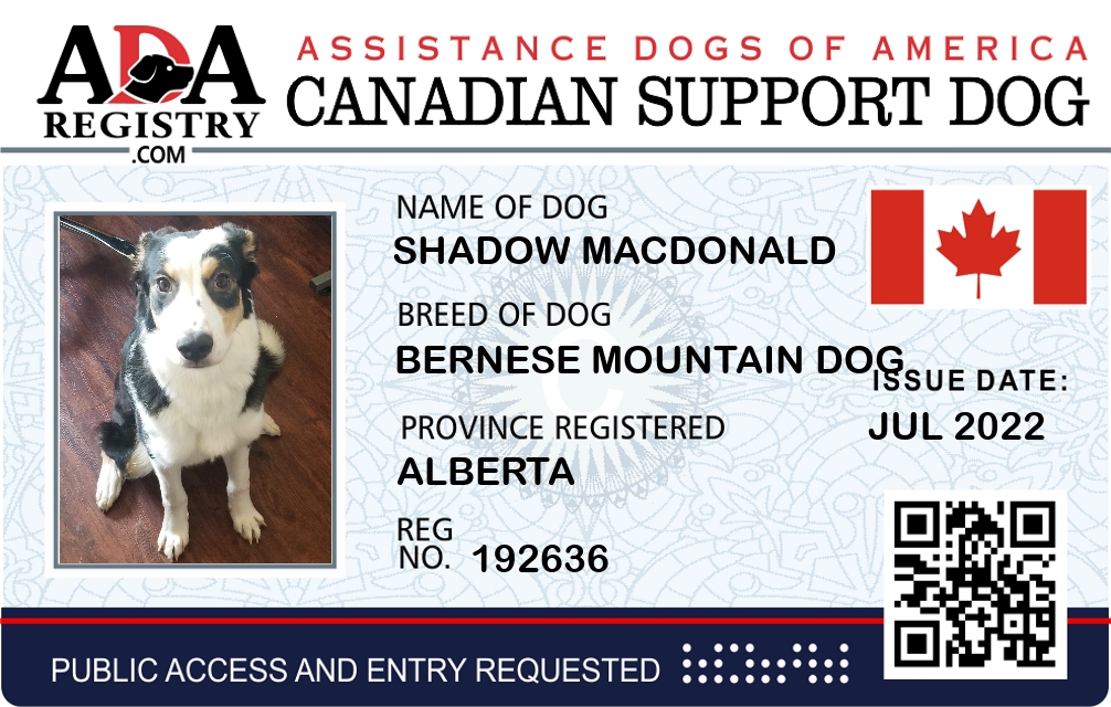 Emotional Support Dog Registration for Shadow MacDonald