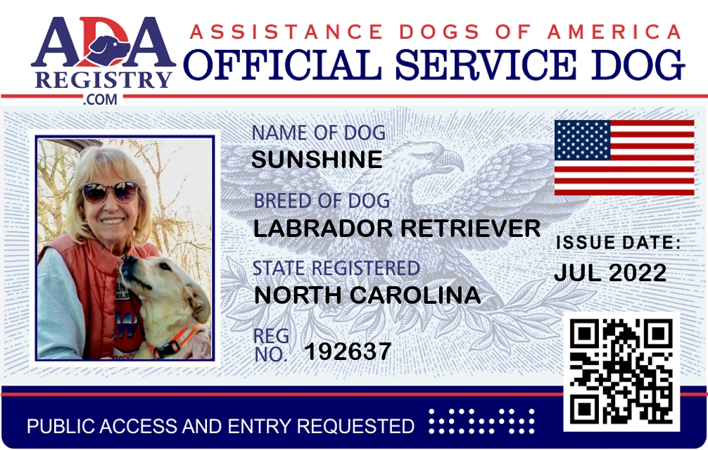 Service Dog Registration for Sunshine