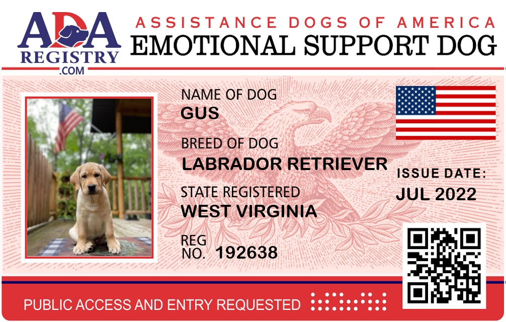 Emotional Support Dog Registration for Gus