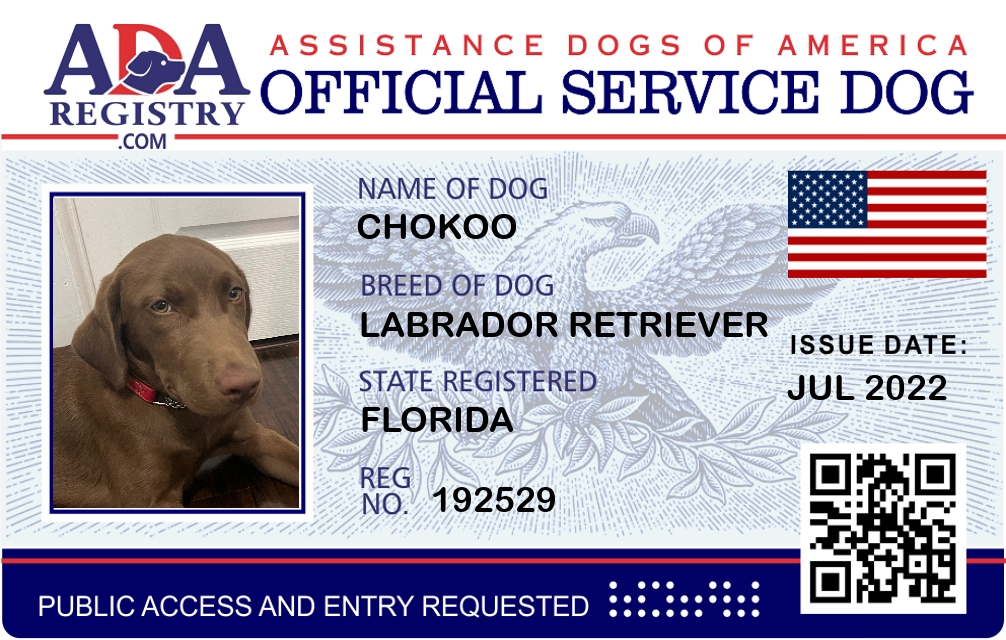 Service Dog Registration for Chokoo