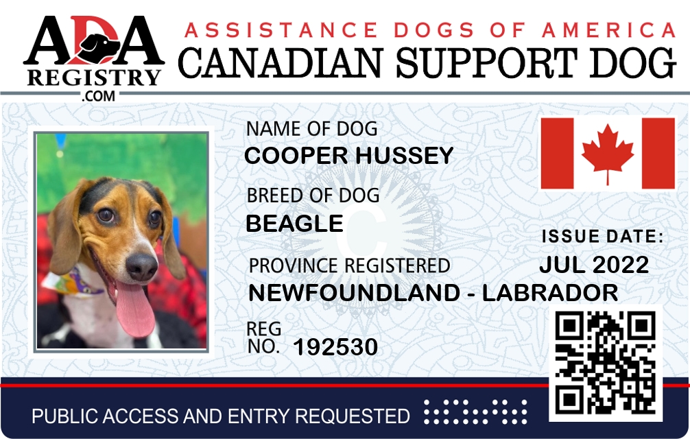 Emotional Support Dog Registration for Cooper Hussey