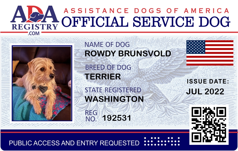 Service Dog Registration for Rowdy Brunsvold