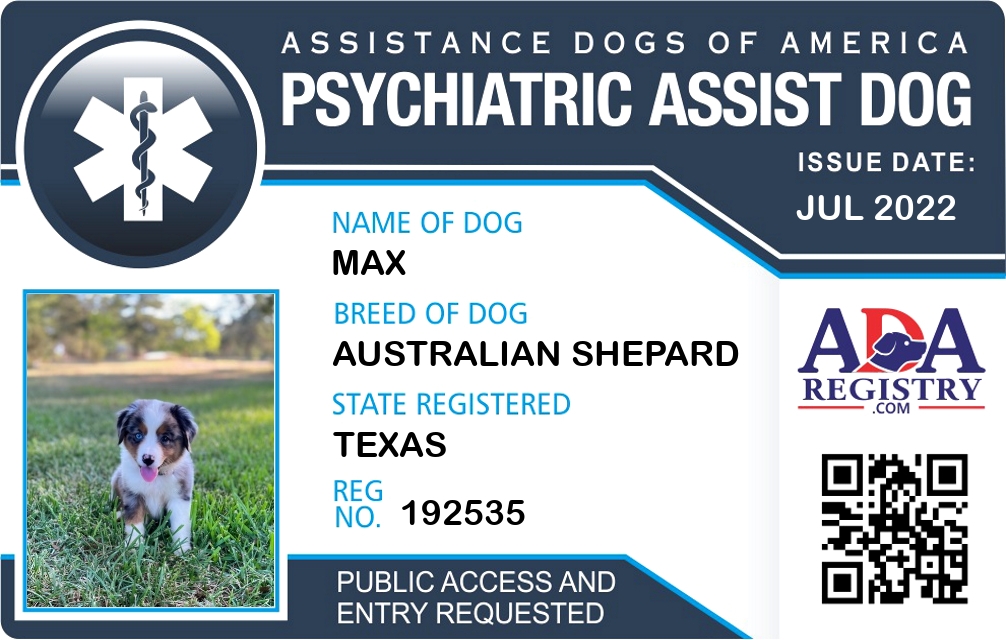 Psychiatric Service Dog Registration for Max