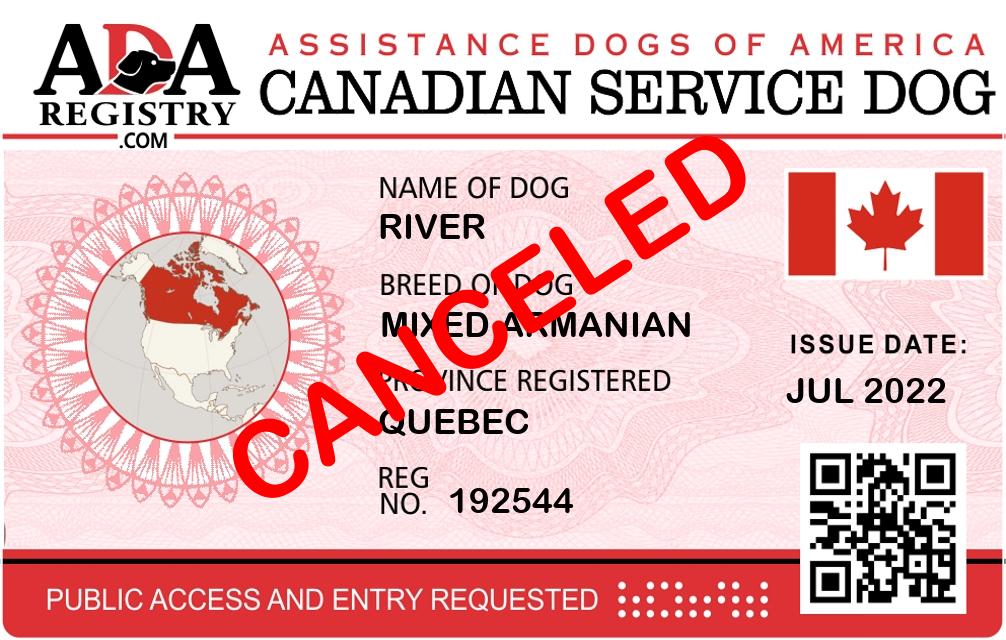 Service Dog Registration for Robert Hamill