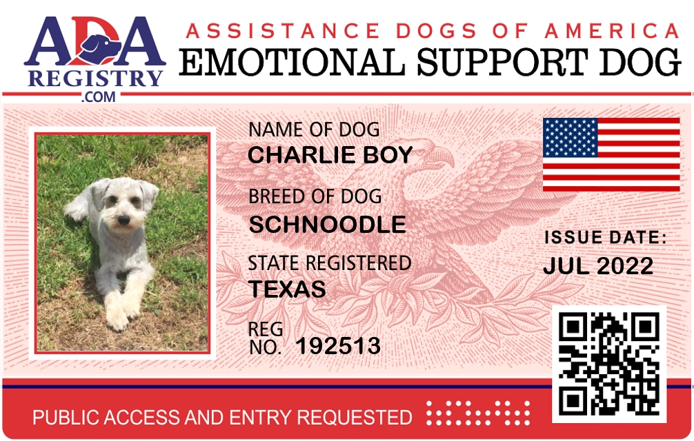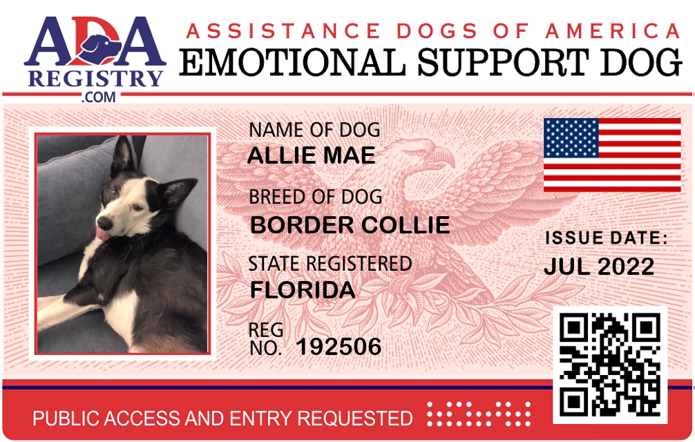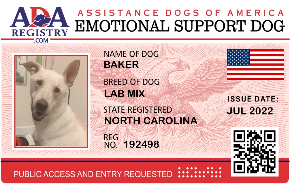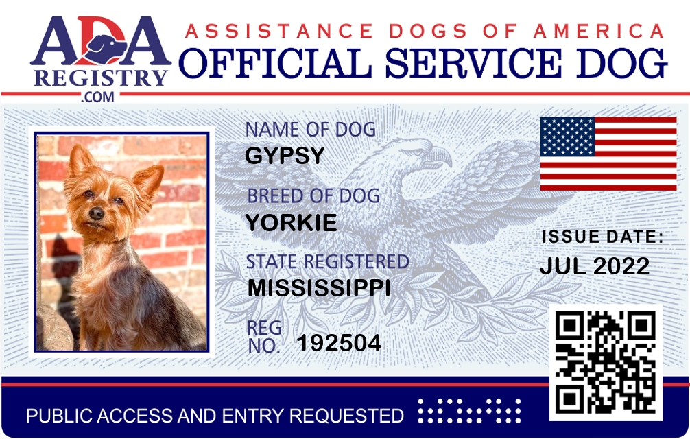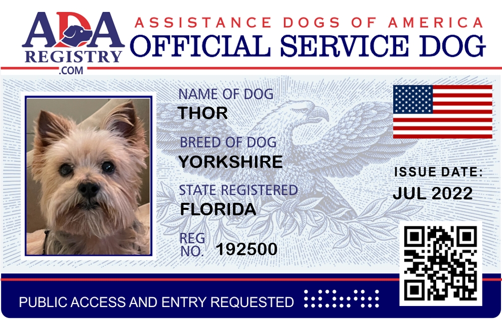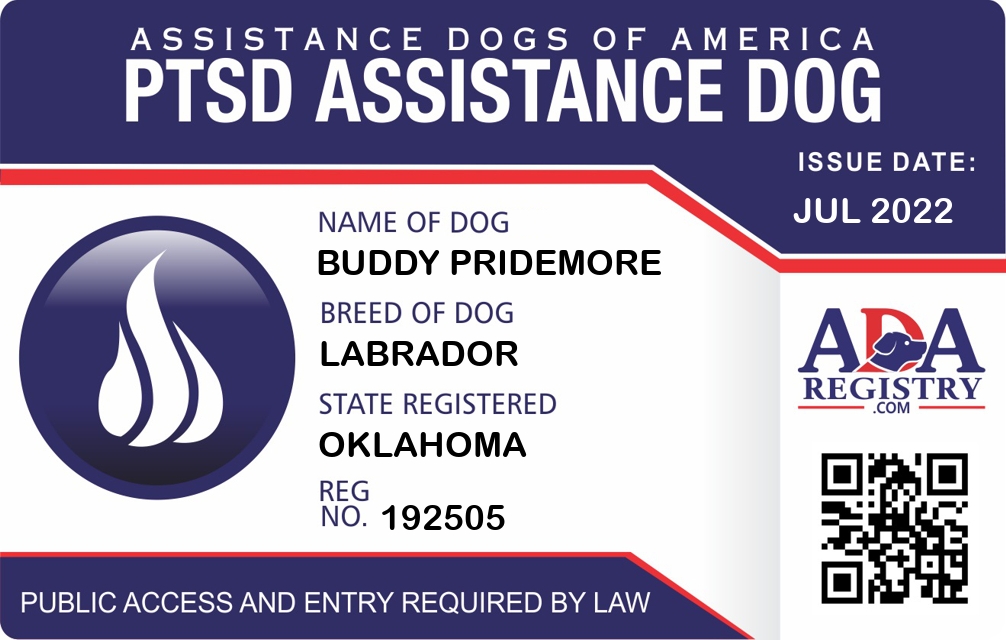 PTSD Assistance Dog Registration for Buddy Pridemore