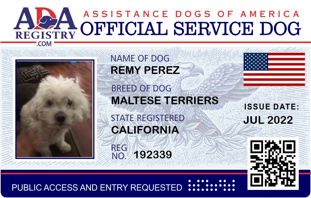 Service Dog Registration for Remy Perez