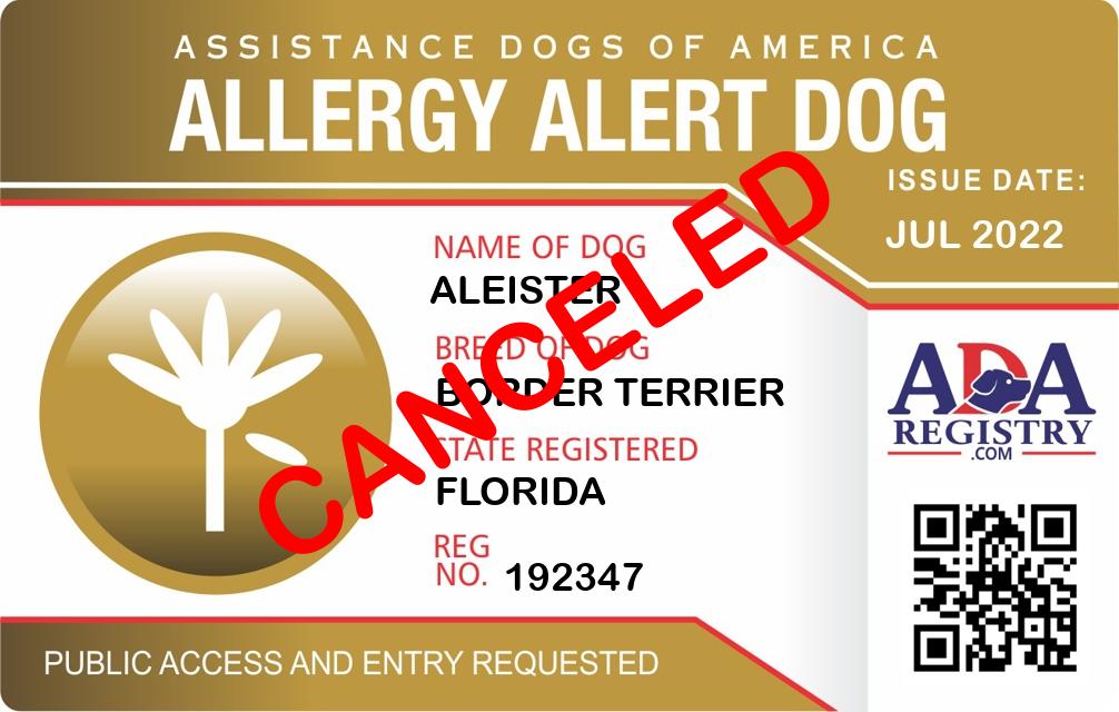 Allergy Alert Dog Registration for