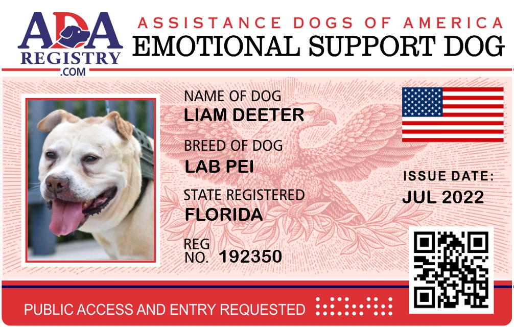 Emotional Support Dog Registration for Liam Deeter