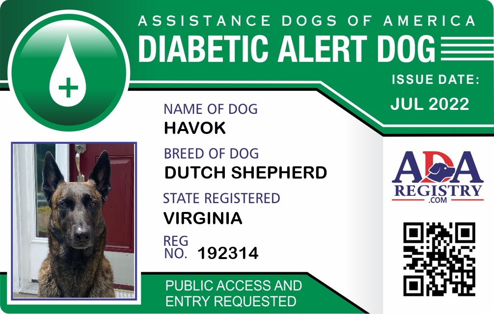 Diabetic Alert Dog Registration for Havok