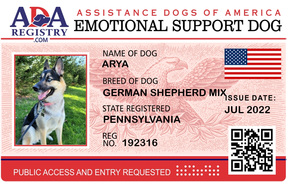Emotional Support Dog Registration for Arya