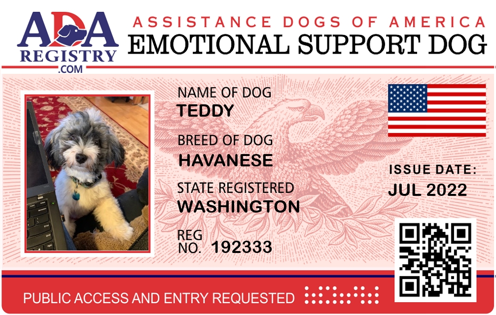 Emotional Support Dog Registration for Teddy