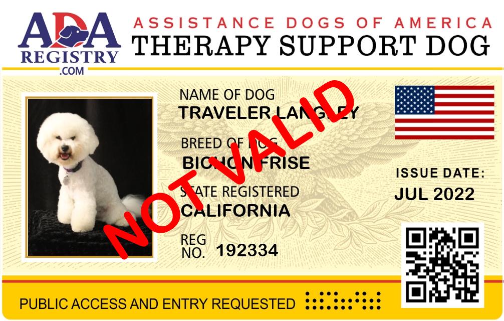 Therapy Dog Registration for Traveler Langley