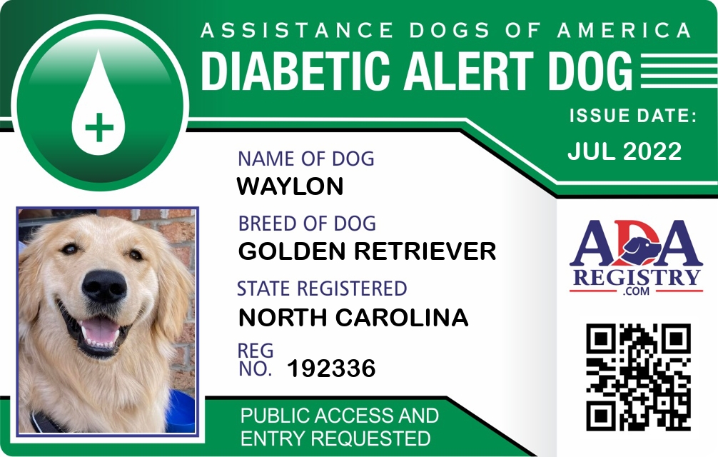 Diabetic Alert Dog Registration for Waylon