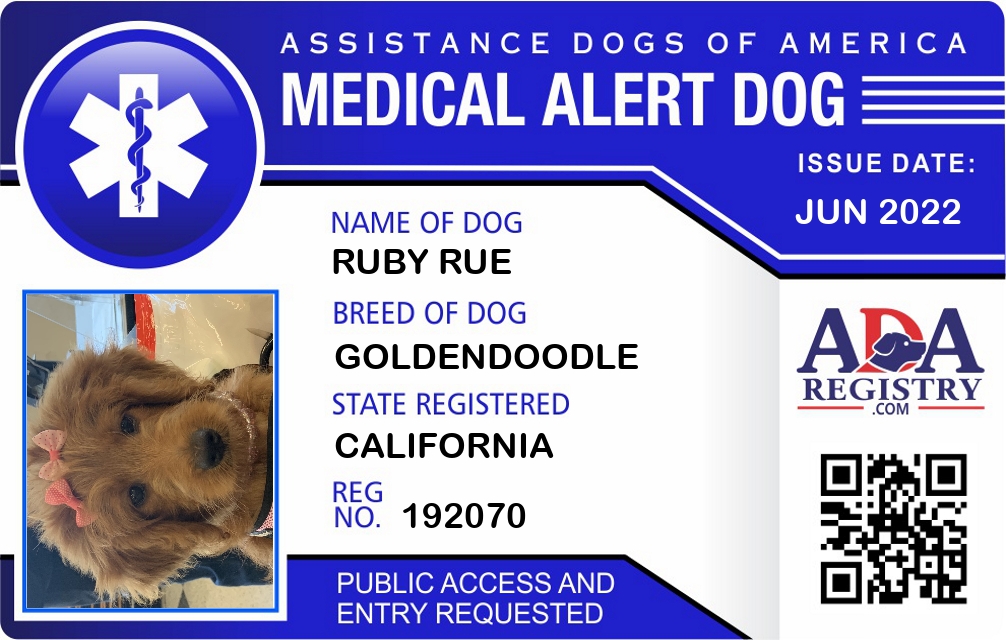 Medical Alert Dog Registration for Ruby Rue