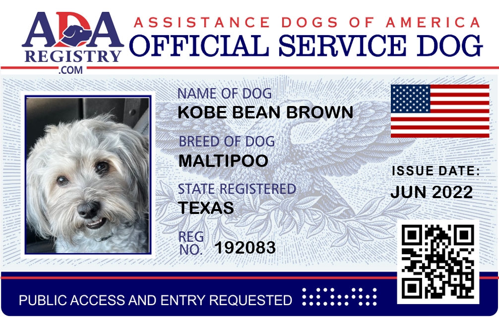 Service Dog Registration for Kobe Bean Brown