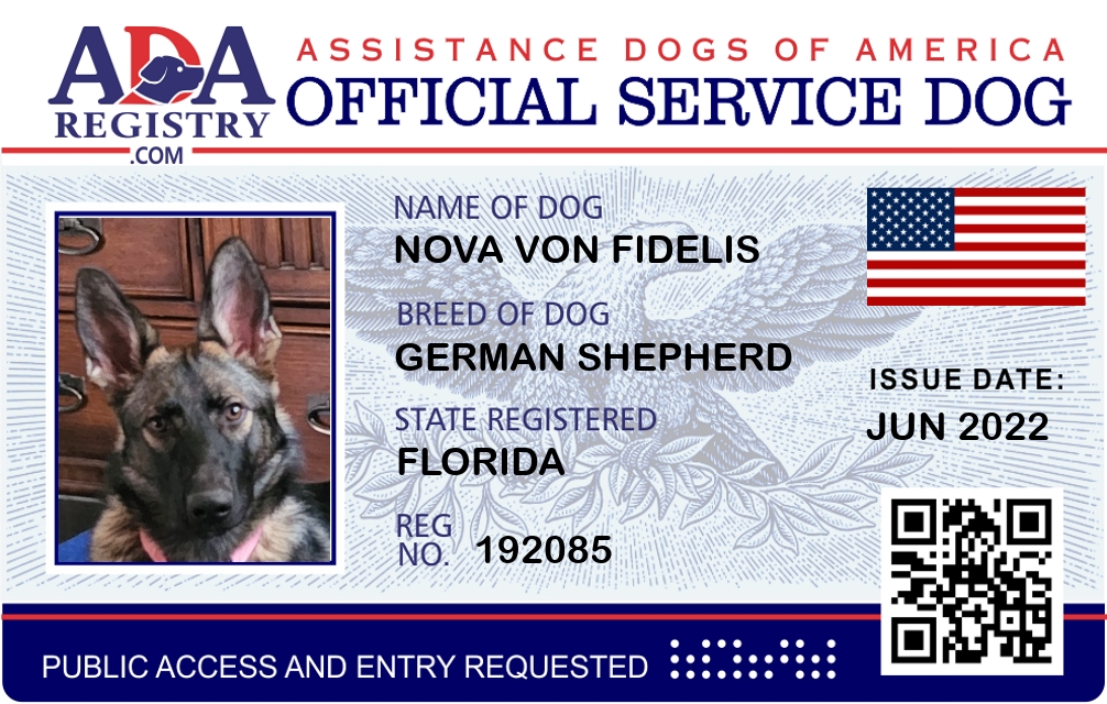 Service Dog Registration for Nova Von Fidelis