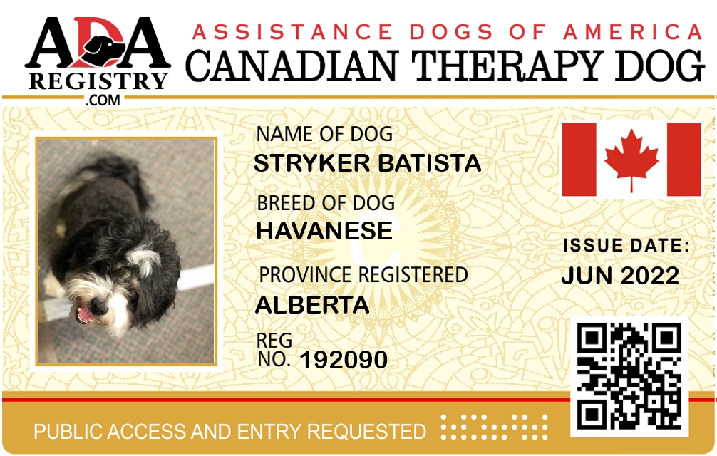 Therapy Dog Registration for Stryker Batista