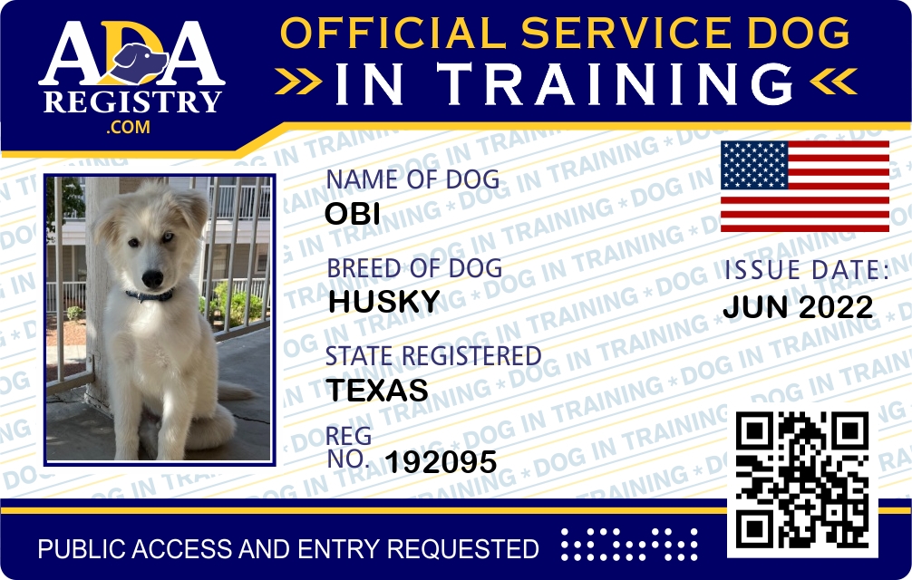 Service Dog In Training Registration for Obi