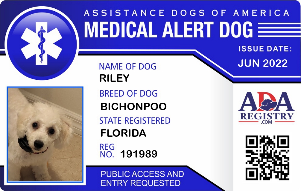 Medical Alert Dog Registration for Riley