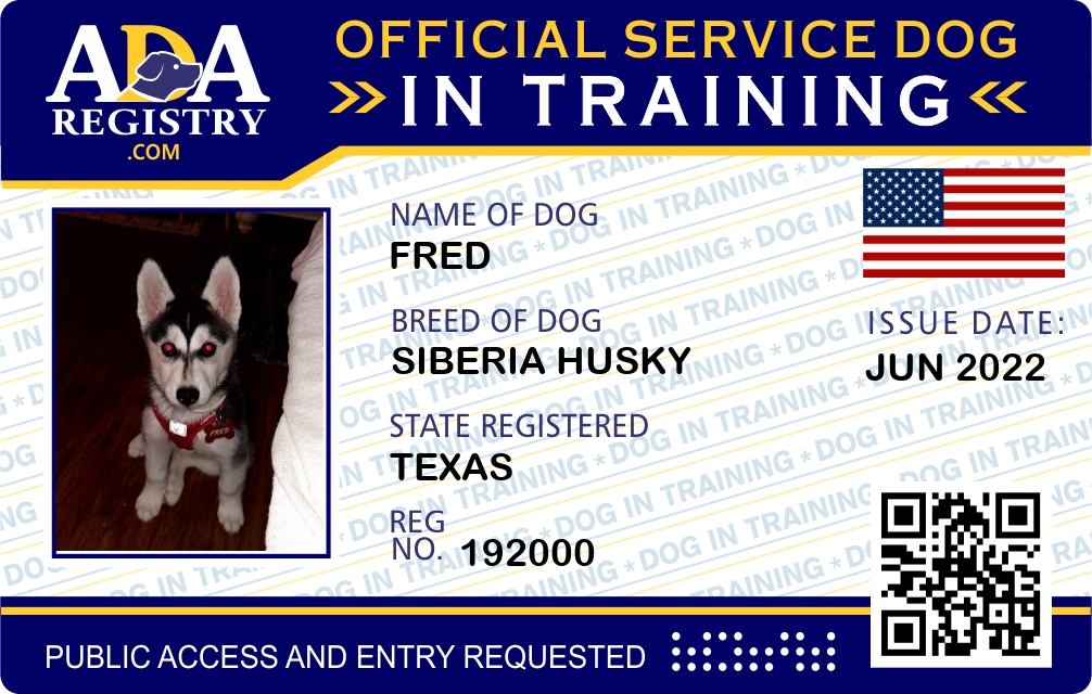 Service Dog In Training Registration for Fred